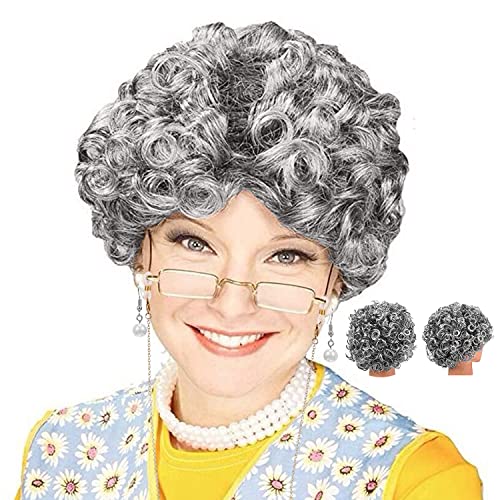 ❤【Oma-pruik】: de oma-pruiken bestaan uit hoogwaardige kunstvezels en pruikdoppen van polyester. Ze worden niet gemakkelijk beschadigd of verkleuren, en ze zullen het lichaam niet beschadigen. Het uiterlijk is realistisch, duurzaam en kan lange tijd worden gebruikt. Deze pruik van de oude dame maakt je feestblik compleet.