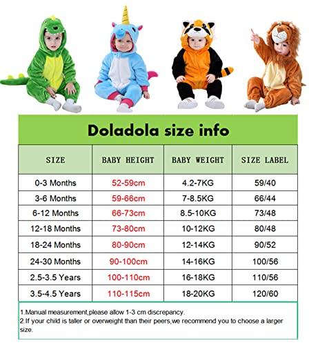 Schattig dierlijk kapje: Doladola babykostuum is voorzien van een schattig dierlijk ontwerp met capuchon, verkrijgbaar in felle kleuren met schattig dierenontwerp. Uw baby zal er heel schattig uitzien als je ze aankleedt in onze baby rompertjes, niet alleen baby, ouders zullen genieten van ons schattige dierenontwerp babykostuum.